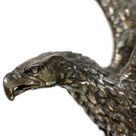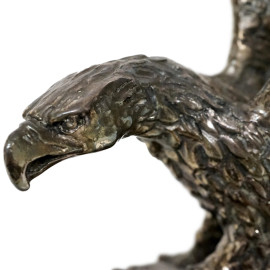 Aquila rivestita in argento 950, XX secolo, peso gr.90, cm 28,5x28,5x16, (difetti)
