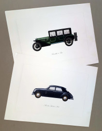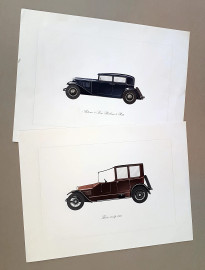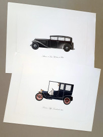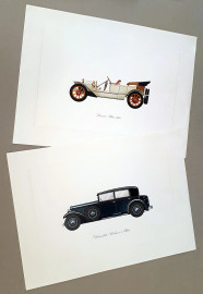 Automotive, lotto composto da 8 stampe su carta edite dalla Casa Automobilistica Lancia raffiguranti automobili Lancia d’epoca, ciascuna cm 40x54, entro cartella originale
