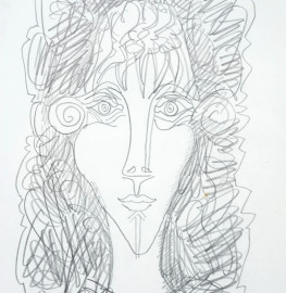 Volto femminile, matita su carta, firmato in basso a destra, cm 11x17,2, entro cornice