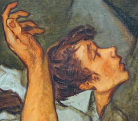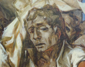 Operai, olio su tela, firmato e datato in alto a destra, cm 121.8x81.5