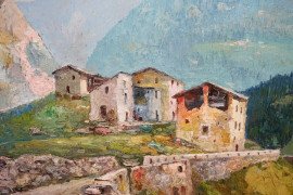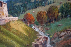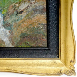 Cascata del Torrente, XIX secolo, olio su compensato, cm 50x70, entro cornice, (difetti)