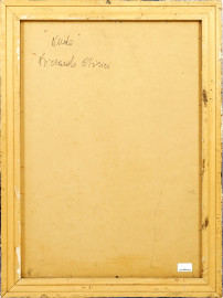 Nudo seduto, olio su compensato, firmato e titolato sul retro, cm 99.5x70, entro cornice