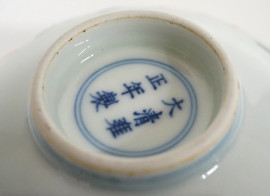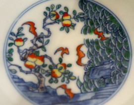 Ciotola in porcellana policroma con decori a chinoiserie, XX secolo, cm 6,5x14,7