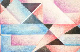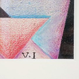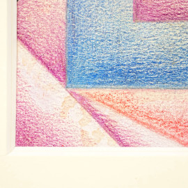Composizione astratta, matite colorate su carta, siglato in basso a destra V.I., cm 20x20, entro cornice