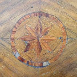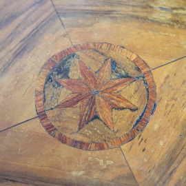 Coppia di comodini impiallacciati in Bois de Rose e intarsiati in varie essenze, con cassetto frontale, inserti di bronzo agli angoli anteriori e piedini anteriori ferini, cm 63,5x39,5x30,5, (difetti)