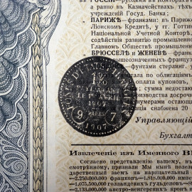 Coppia di obbligazioni bancarie russe, 1906, cm 40x31, (difetti)