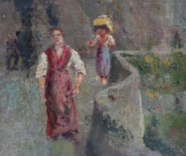 Costiera amalfitana, tela applicata su tavola, cm 58x77,5, firmato in basso a sinistra, entro cornice