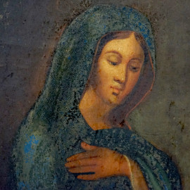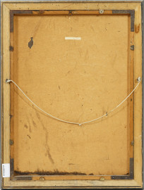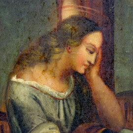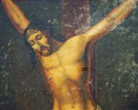 Crocifissione con Santa Maria Maddalena, San Giovanni Evangelista e Maria, XIX-XX secolo, olio su cartone telato, cm 71x51,3, entro cornice