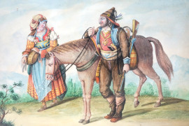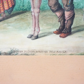 Donna di Casal Bordino dell'Aquila, XIX secolo, acquerello su carta, cm 19,5x25, titolato in basso, entro cornice