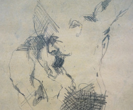 Ennio Calabria (1937-2024), Studio per "Lancio di peso", matita su carta, cm 44,5x33,5, firmato, titolato e datato "1958" in basso a destra, entro cornice