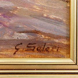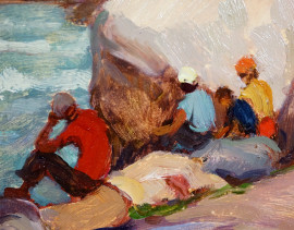 Figure al torrente, XX secolo, cm 23,5x17,5, firmato in basso a destra, entro cornice
