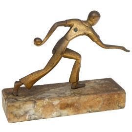 Giocatore di bocce, XX secolo, metallo su base in marmo, altezza cm 15,5, (difetti)