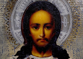 Icona Russa raffigurante cristo benedicente, con riza in argento, XX secolo, cm 22,5x18, (difetti)