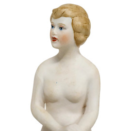 Il bagno, porcellana policroma, XX secolo, cm 16x16,5 (difetti)