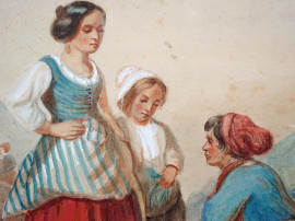 Il pescatore, acquerello su carta, XIX secolo, cm 29x38,5 compreso passepartout, entro cornice, (difetti)
