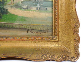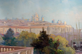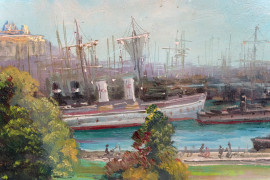 Il porto di Genova da Villa Doria, XIX secolo, olio su compensato, cm 30x40, firmato, entro cornice (difetti)
