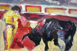 La Corrida, olio su cartone, XX secolo, cm 12,5x16,5, entro cornice