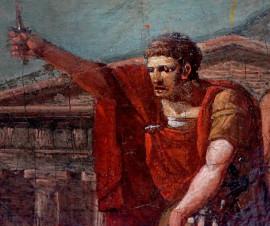 La morte di Camilla, XIX secolo, olio su tela, cm 30x45, entro cornice, (difetti)