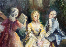 La serenata, olio su tavola, XX secolo, cm 39,5x28,5, entro cornice