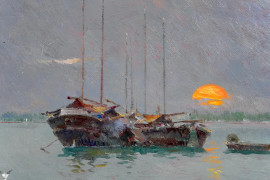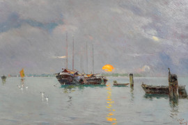 Laguna di Venezia, XIX secolo, olio su tavola, firmato, cm 31x45,2, entro cornice