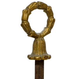 Lampada da tavolo bouilotte a due luci in bronzo dorato cesellato e ferro, XX secolo, altezza cm 55, (difetti)