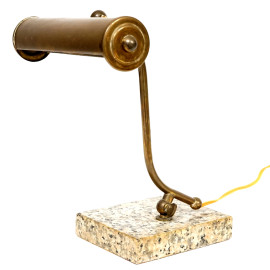 Lampada da tavolo regolabile in bronzo su base rettangolare in marmo, XX secolo, altezza cm 31, (difetti)