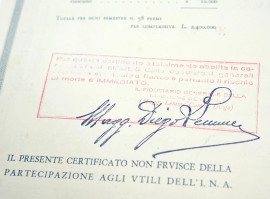 Lotto composto da due certificati di sottoscrizione novennale ai Buoni del Tesoro, L. 500, 1949