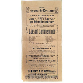 Lotto composto da quattro antiche locandine di spettacoli teatrali dei primi del Novecento, cm 35x17, 31x21, 48x17
