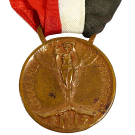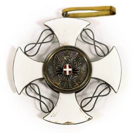 Lotto composto da una croce pendente da onoreficenza in metallo e smalto bianco con lo stemma dei Savoia, una medaglia "Coniata nel bronzo nemico" 1915-1918 e una Studentika in argento, metallo e stoffa, misure massime cm 19x2,5 (difetti e segni del tempo)