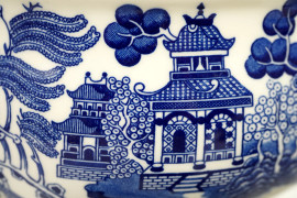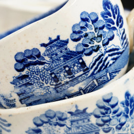 Lotto composto da vari oggetti in ceramica nei toni del bianco e del blu, misura max cm 27,5x20 (difetti)