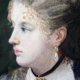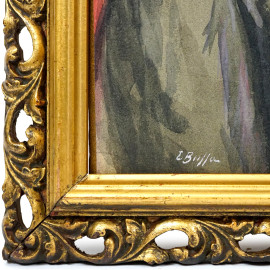 Lotto di acquerelli raffiguranti due ritratti, XX secolo, cm 34x24,5, entro cornice