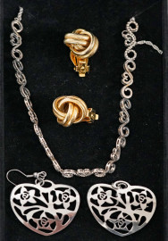 Lotto di bigiotteria in materiali diversi, composta da due coppie di orecchini e un girocollo