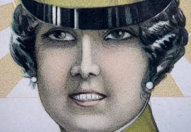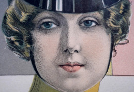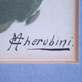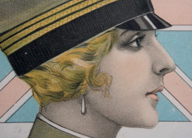 Lotto di tre cartoline di M. Cherubini raffiguranti donne in uniforme, misure comprese passepartout cm 18,5x14, entro cornici