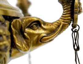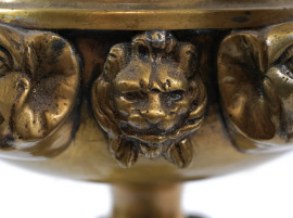 Lucerna in bronzo con decori cesellati e sbalzati a motivi animalier, XX secolo, altezza cm 65