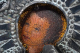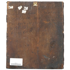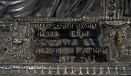 Madonna con il Bambino, XIX secolo, tempera su tavola, riza in argento, cm 31x26
