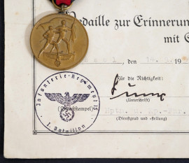 Medaglia per la commemorazione del 1 ottobre del 1938, cm 9,5, entro cornice