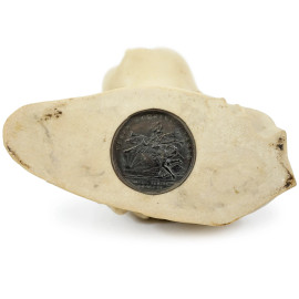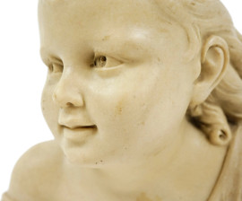 Busto di una fanciulla, polvere di marmo, reca sotto la base il verso della medaglia commemorativa della visita di Pietro il Grande alla Zecca di Parigi, altezza cm 16