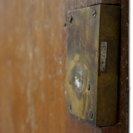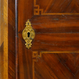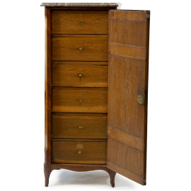 Mobile schedario francese in legno di mogano con piano superiore in marmo, a un anta contenente sei sportelli a ribalta, cm 127x35x49, XIX secolo, (difetti)