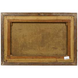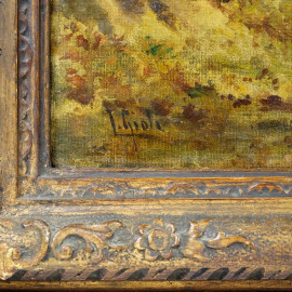 Paesaggio boschivo, XIX-XX secolo, olio su tela, cm 48,5x75,5, firmato in basso a sinistra