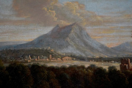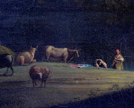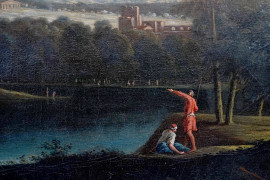 Paesaggio con figure, fine XVIII secolo, olio su tela, cm 35x51,3, entro cornice