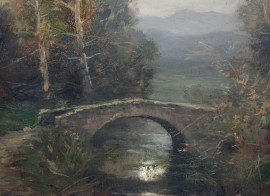 Paesaggio con torrente, sec. XIX, olio su tela, cm 51x66, entro cornice
