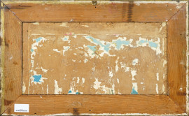 Paesaggio, olio su tela riportata su cartone, firmato, cm 28,5x56, entro cornice