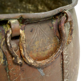 Paiolo in bronzo, manifattura mediorientale, XX secolo, altezza cm 33 diametro cm 52, (difetti)