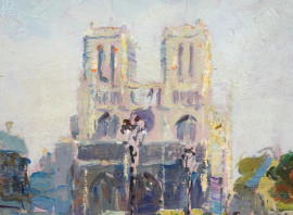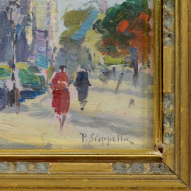 Parigi, olio su cartone, XIX secolo, cm 17x22, firmato, entro cornice, (difetti)