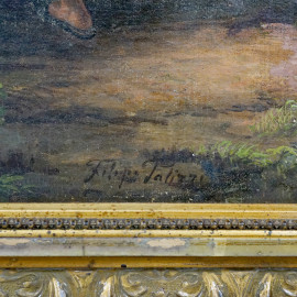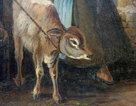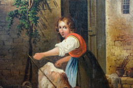 Pastorella, XIX secolo, olio su tela applicata su cartone, cm 50x33, firmato, entro cornice, (difetti)
