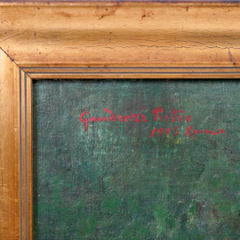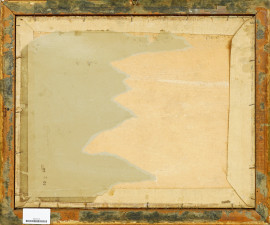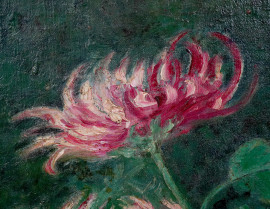 Peonie, olio su tela riportata su cartone, firmato, cm 40x50, entro cornice