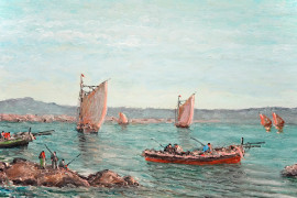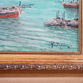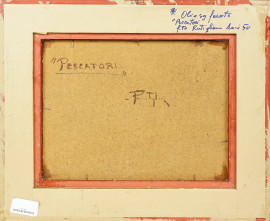 Pescatori, olio su faesite, XX secolo, cm 30x40, entro cornice
