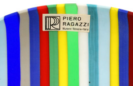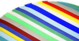 Piatto tondo in ceramica a bande multicolore, XX secolo, diametro cm 20