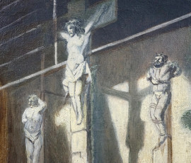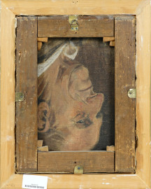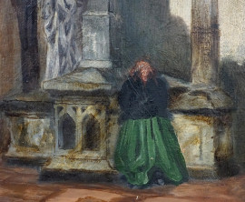 Preghiera davanti alla crocifissione, XX secolo, olio su tela, cm 35,5x27,3, entro cornice