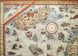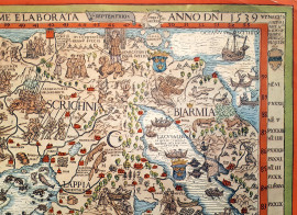 Riproduzione vintage di una carta geografica del 1539, cm 34x45